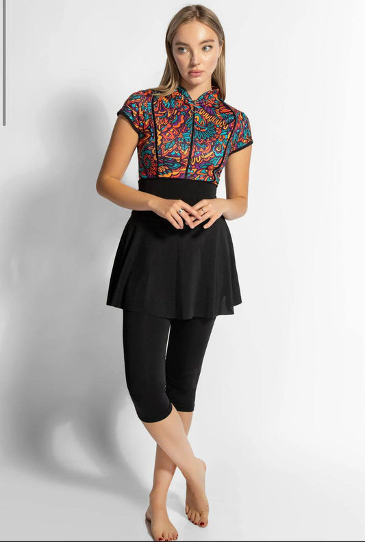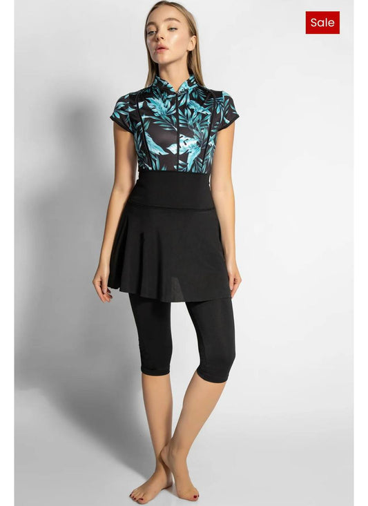 مجموعة من 3 قطع من ملابس السباحة تانكيني كاملة الجسم مع تنورة الشاطئ وبنطلون