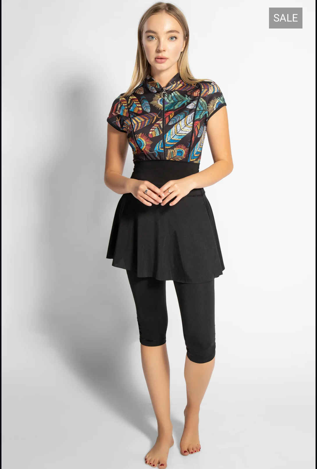 3Piece Full Body Tankini One Piece Swimsuit With Beach Skirt And Slimfit Leggings