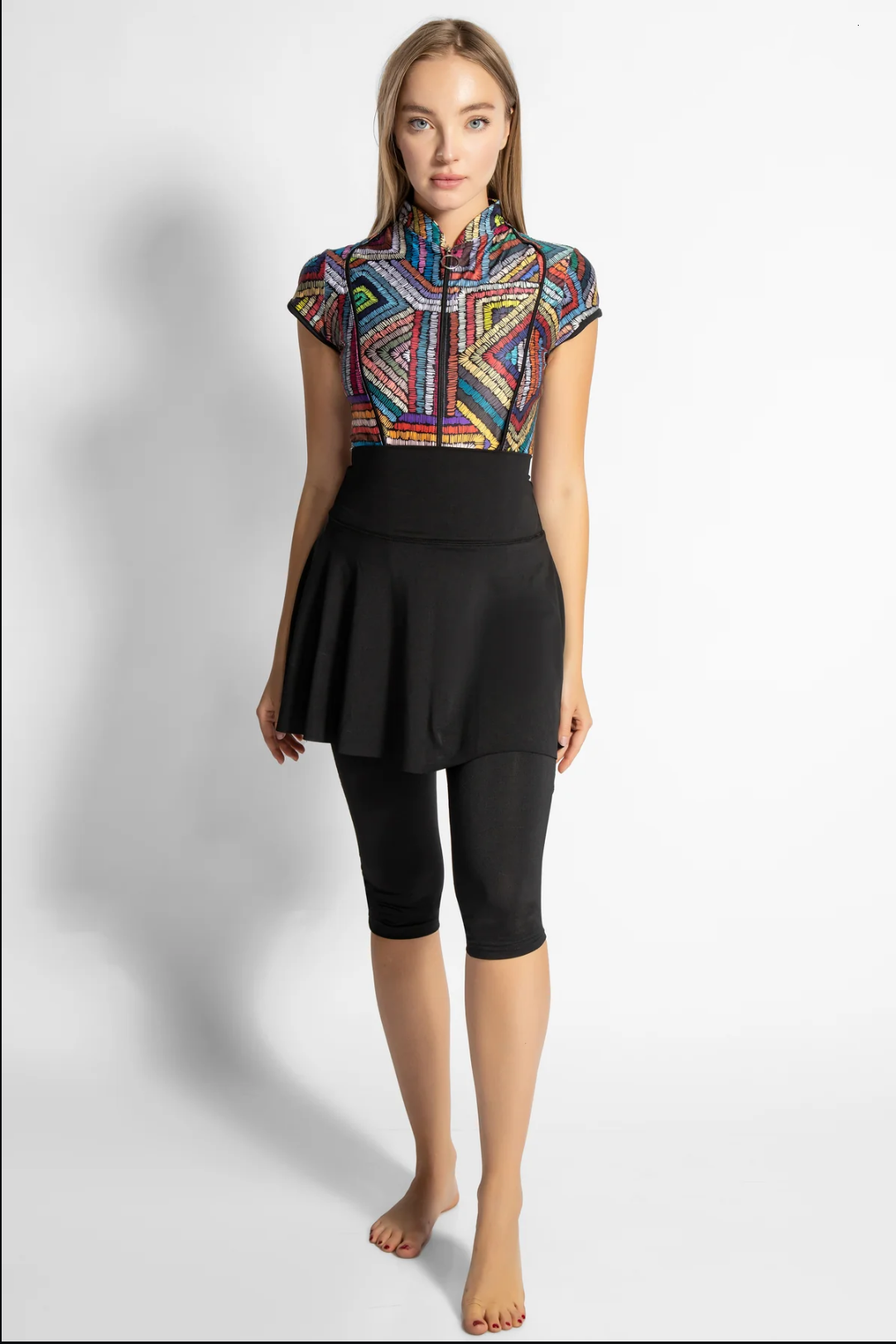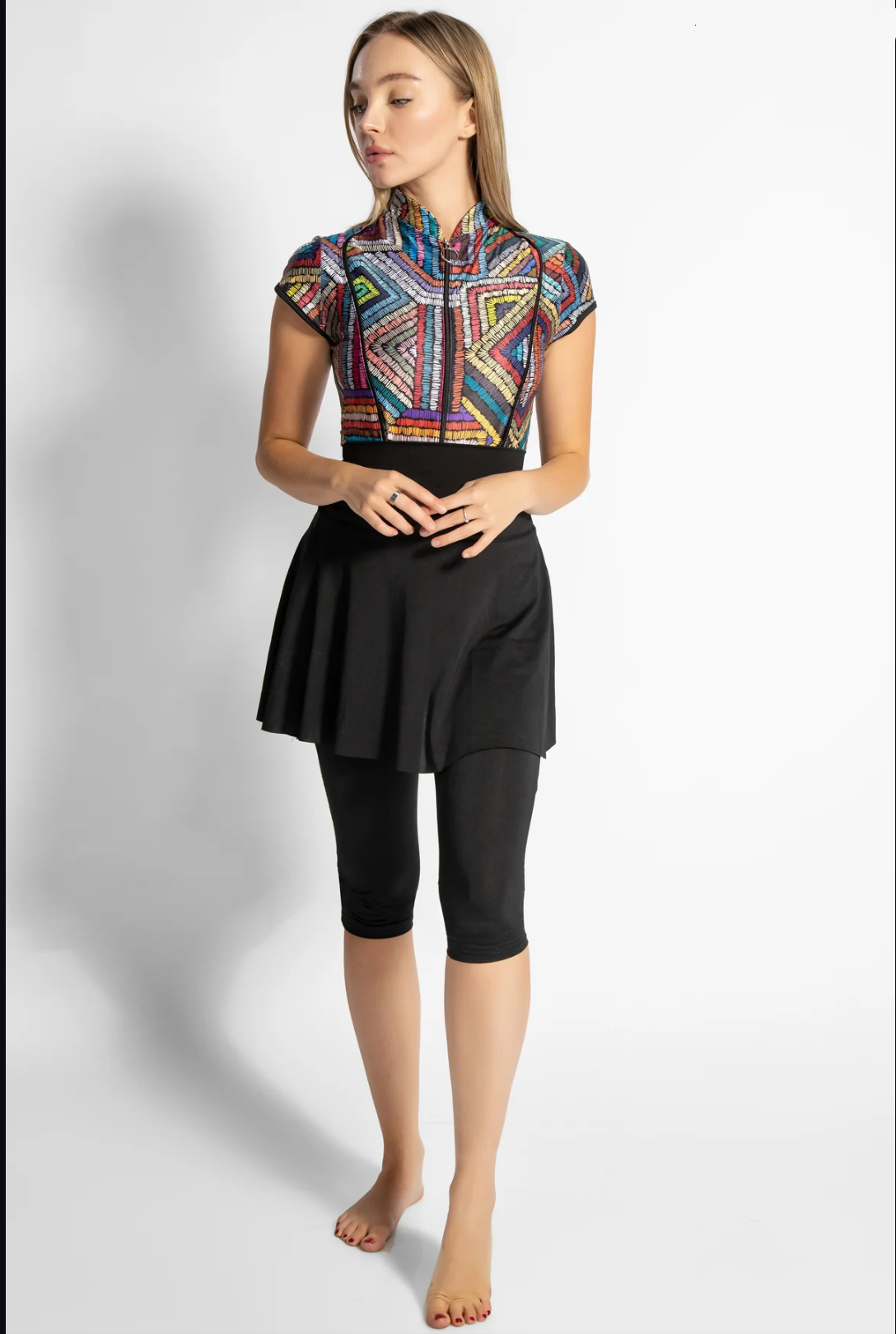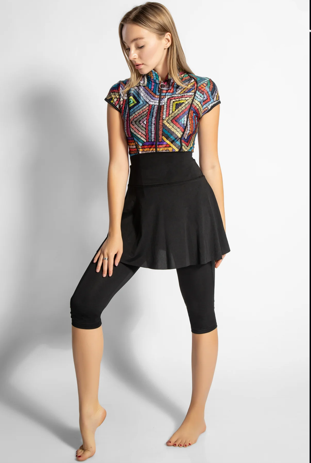 3Piece Full Body Tankini One Piece Swimsuit With Beach Skirt And Slimfit Leggings