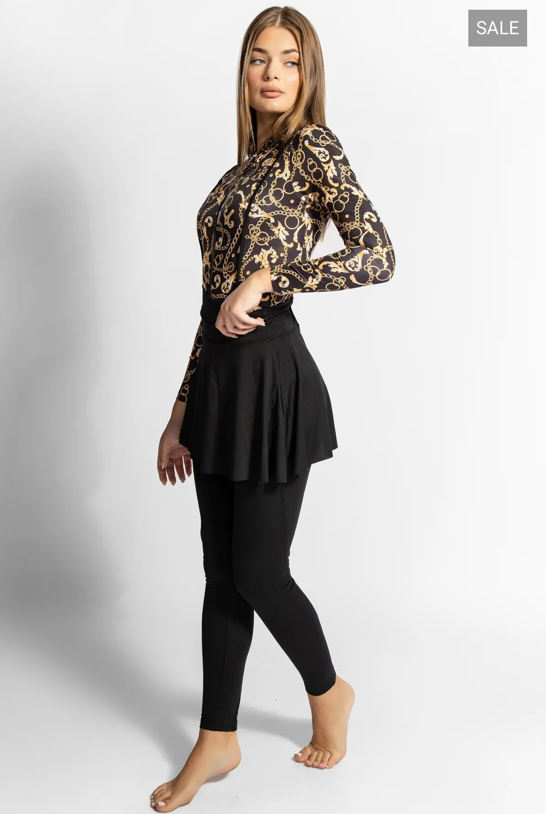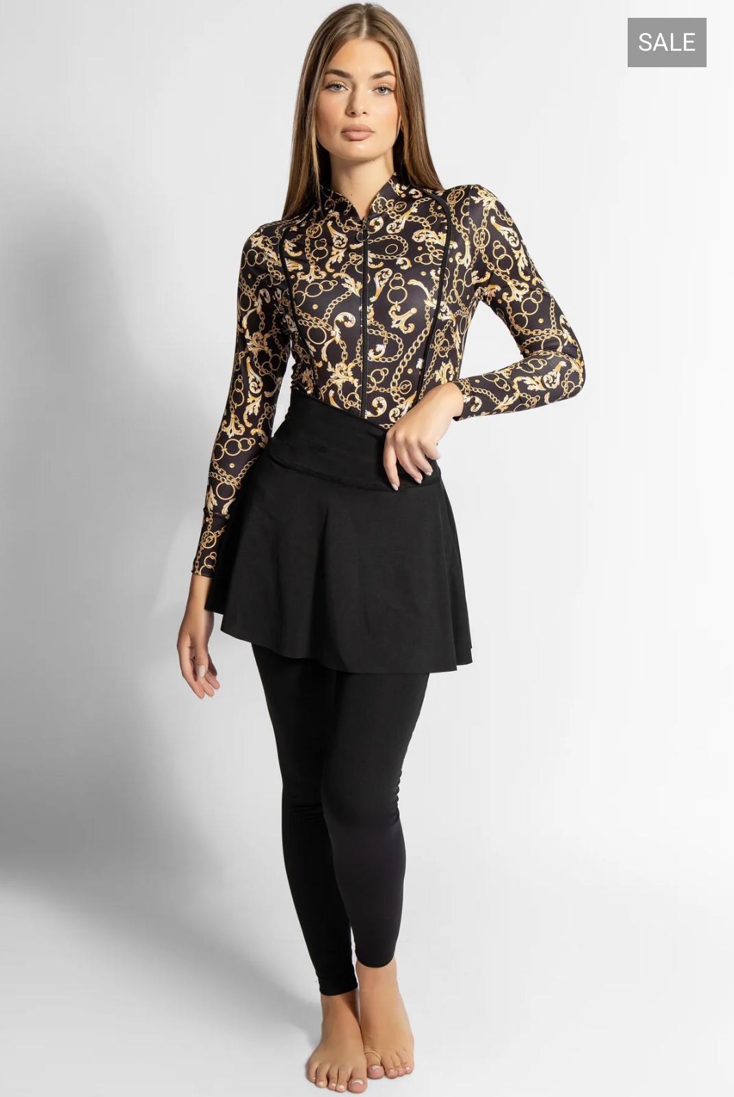 3Piece Full Body burkini One Piece Swimsuit With Beach Skirt And Slimfit Leggings